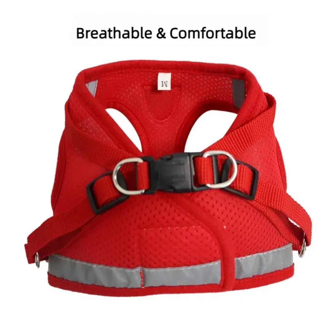 Este conjunto incluye un arnés de malla transpirable y una correa a juego, diseñado para que los paseos, viajes o salidas al exterior sean cómodos, seguros y sin estrés.